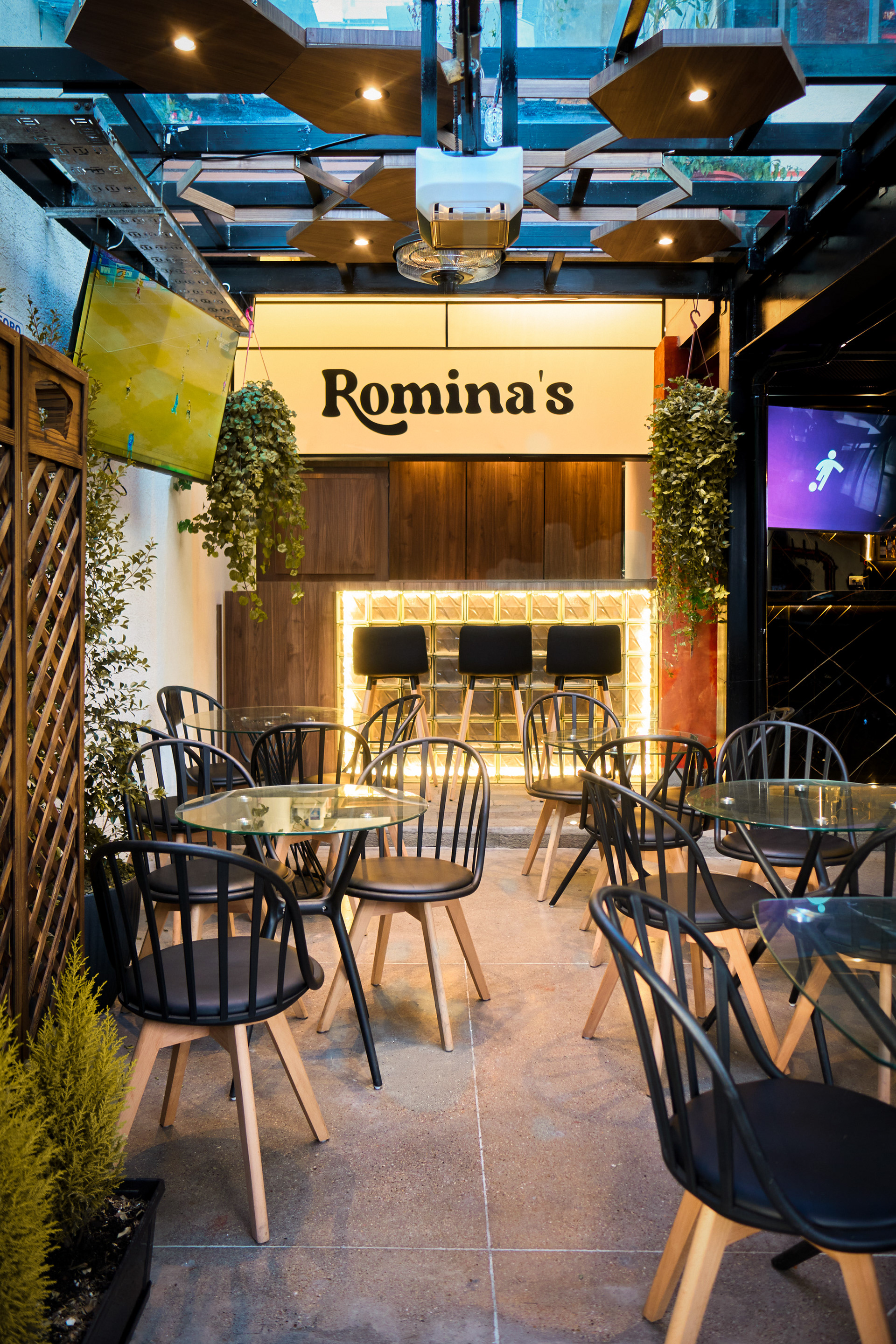 Rominas es un bar junto a la Pradera que logra combinar elegancia y calidez en un espacio accesible. Su diseño se centra en la luz como principal material: una iluminación suave, difuminada a través de transparencias, envuelve el lugar y crea una atmósfera íntima. El gran letrero de acrílico y el counter de bloques de vidrio filtran una luz cálida que, al integrarse con la madera y la vegetación, generan un ambiente fresco, acogedor y sofisticado.